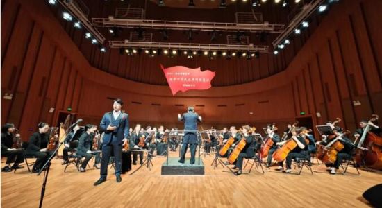 音樂會在交響樂《紅旗頌》的旋律中拉開帷幕。小號奏出的音符,把觀眾帶到開國大典上國旗冉冉升起那激動人心的時刻。弦樂奏出舒展、優(yōu)美的主題,向觀眾講述在紅旗引導下,無數(shù)英烈英勇奮戰(zhàn)、奮發(fā)向上的革命氣概和感人故事。簡短有力的圓號,豪邁而又激昂,象征著紅旗飄揚,帶領(lǐng)全國各族人民邁開巨人般的步伐走進新時代。蕩氣回腸的音樂深深感染了現(xiàn)場觀眾,座席上響起陣陣掌聲。
