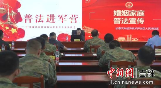 中新網(wǎng)吉林新聞7月25日電 (譚偉旗 張贏予)為助力部隊法治建設,近日,在“八一”建軍節(jié)即將到來之際,長春汽車經(jīng)濟技術開發(fā)區(qū)人民法院副院長楊瑞平帶領綜合審判庭、立案庭、司法警察大隊的法官干警到軍營開展“普法進軍營”活動,為“最可愛的人”送去一場量身定制的普法套餐。