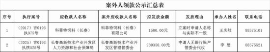 近日,長春新區(qū)人民法院官方公眾號發(fā)布發(fā)放執(zhí)行案款公示(2025年第14期)。
