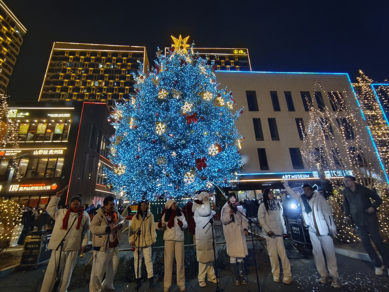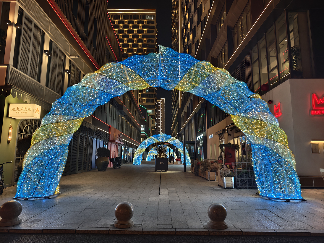 活動當晚,阿卡貝拉樂團的動人歌聲為亮燈儀式拉開序幕。80萬顆LED燈珠組成的8米高流光燈帶同步點亮,與13米高的巨型云杉童話樹交相輝映,搭配光影瀑布、歐洲網(wǎng)紅天使燈陣、光影堤岸等多組藝術(shù)裝置,將青怡坊云瑯打造成流光溢彩的“童話秘境”。游客穿梭其中,步步皆景、處處可打卡,沉浸式感受“現(xiàn)實版童話世界”的獨特魅力。