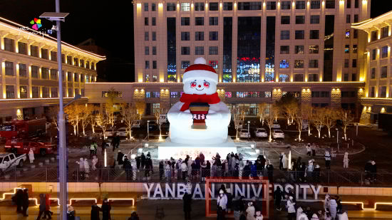 延邊大學正門西側則成為網紅打卡新地標。12月31日17:18,超12米高的網紅大雪人正式亮相,雪人手持印有“延吉”字樣的咖啡杯,搭配紅帽紅圍巾的喜慶裝扮,成為城市跨年的標志性景觀,也讓“延吉”城市標識通過視覺符號深入人心。