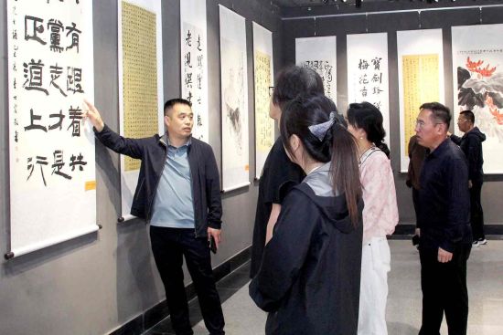活動現(xiàn)場氛圍熱烈,民進會員、書畫愛好者等觀眾絡(luò)繹不絕,大家在書法作品前凝神品讀字里行間的民進精神,在絢麗畫作前輕聲探討,贊嘆創(chuàng)作技藝。參展作品主題鮮明,以書言志、以畫傳情,既追憶民進先賢風(fēng)骨,又禮贊新時代豪邁征程,將民進精神與藝術(shù)追求相融,充分彰顯了民進人“為時代畫像、為時代立傳、為時代明德”的文化自覺,不僅是對民進發(fā)展歷程的深情回望,更是對未來奮進之路的美好展望。