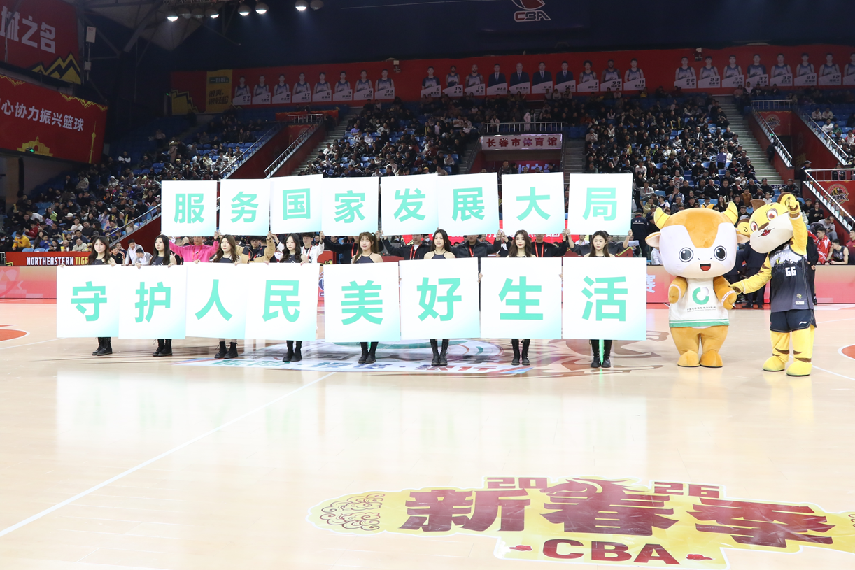 賽場(chǎng)中央,中國(guó)人壽專屬展示環(huán)節(jié)成為節(jié)間亮點(diǎn)。主持人熱情開場(chǎng):“歡迎來到由CBA聯(lián)賽官方主贊助商中國(guó)人壽帶來的互動(dòng)環(huán)節(jié)。中國(guó)人壽為CBA球員助力打call!”伴隨著動(dòng)感的音樂,16名啦啦隊(duì)員率先登場(chǎng),在中圈帶來活力舞蹈表演,表演結(jié)束后,隊(duì)員們每人舉起一張展示牌,共同拼組出“服務(wù)國(guó)家發(fā)展大局,守護(hù)人民美好生活”的企業(yè)使命,東北虎俱樂部吉祥物與中國(guó)人壽壽險(xiǎn)牛犇犇吉祥物攜手登場(chǎng),在場(chǎng)內(nèi)舞動(dòng),萌趣的姿態(tài)與整齊的展示相映成趣,瞬間點(diǎn)燃現(xiàn)場(chǎng)的氛圍。表演落幕,“一個(gè)國(guó)壽,一生守護(hù)!感謝中國(guó)人壽為我們帶來的精彩時(shí)刻,中國(guó)人壽,相知多年,值得托付,要投就投中國(guó)人壽!”的話語響徹賽場(chǎng),將品牌的守護(hù)理念傳遞給現(xiàn)場(chǎng)的每一位觀眾。