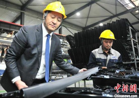 汽車門護板整齊地排列在傳送帶上,仿佛巨龍身上的鱗片。陳建林從中抽出一片,拿到燈下來回翻看,一番挑剔過后終于露出滿意的笑容。