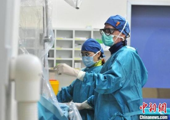 斯考森(右)在為患者進(jìn)行手術(shù)(資料圖)。吉林心臟病醫(yī)院供圖