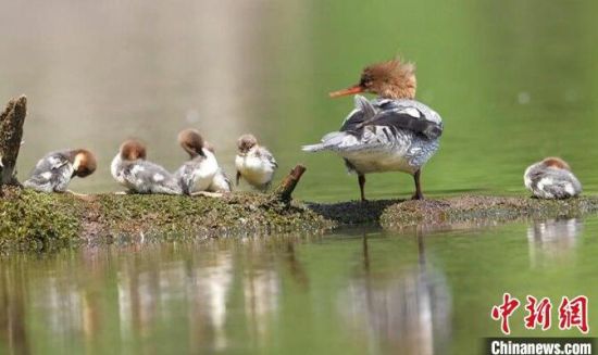 在吉林園池濕地國家級自然保護區(qū)頭道白河支流,工作人員監(jiān)測到40多只中華秋沙鴨,4個天然巢、14個仿生巢都有中華秋沙鴨入住。該保護區(qū)管理局資源科科長韓銘介紹,已有5個巢成功完成孵化,新跳巢雛鳥數(shù)量有51只,其他巢的中華秋沙鴨也在孵化中。