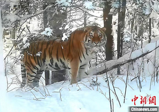12月3日,長(zhǎng)白山保護(hù)區(qū)工作人員發(fā)現(xiàn)的野生東北虎,拍攝時(shí)與老虎距離不到10米!(吉林省林業(yè)和草原局供圖)