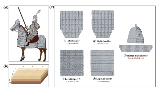 本研究對象是目前世界上已知最早的可復(fù)原甲騎具裝實(shí)物—出土于遼寧北票喇嘛洞墓地的珍貴遺存。研究結(jié)果表明,這套甲胄從結(jié)構(gòu)設(shè)計到材質(zhì)加工均體現(xiàn)出高度的技術(shù)成熟度,證明鮮卑在公元4至5世紀(jì)已具備先進(jìn)的甲胄制造能力;而古蛋白質(zhì)組學(xué)分析首次證實(shí),甲胄制作中使用了羊源材料——這一發(fā)現(xiàn)填補(bǔ)了古代游牧民族甲胄材質(zhì)研究的空白,為探討當(dāng)時草原地區(qū)的動物資源利用、畜牧業(yè)發(fā)展與軍事手工業(yè)的關(guān)聯(lián)提供了直接證據(jù)。
