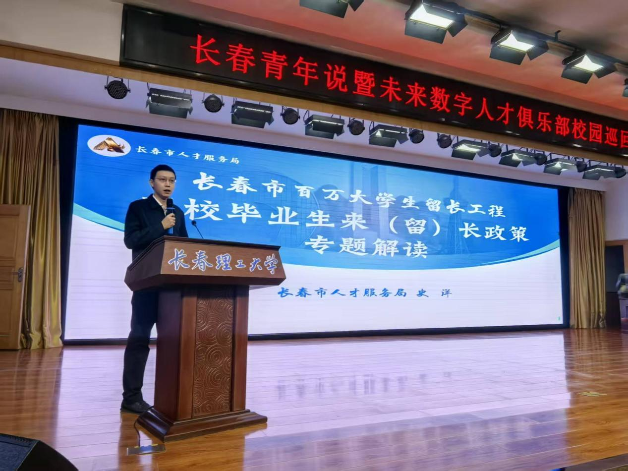 為積極推進(jìn)青年發(fā)展型城市建設(shè),服務(wù)長(zhǎng)春市“長(zhǎng)聚學(xué)子·春城暖才”人才工作部署,11月12日,由長(zhǎng)春市政務(wù)服務(wù)和數(shù)字化建設(shè)管理局、共青團(tuán)長(zhǎng)春市委主辦,長(zhǎng)春市數(shù)字經(jīng)濟(jì)協(xié)會(huì)、長(zhǎng)春市人才服務(wù)局、長(zhǎng)春理工大學(xué)承辦的“長(zhǎng)聚學(xué)子·春城暖才”長(zhǎng)春青年說(shuō)暨未來(lái)數(shù)字人才俱樂(lè)部校園巡回宣講活動(dòng)在長(zhǎng)春理工大學(xué)正式啟動(dòng)。