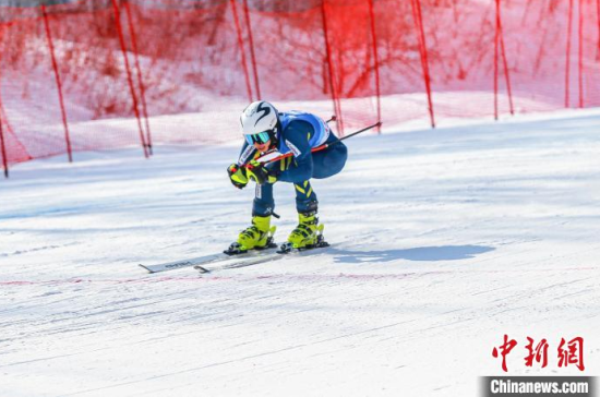 全國(guó)高山滑雪冠軍賽在吉林松花湖雪場(chǎng)正式開賽,選手正在比賽。 思諾 攝