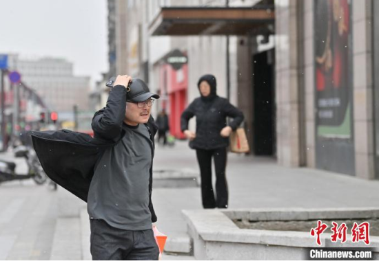 3月12日,長春市迎來大風天氣,市民捂住帽子在風中行走!埇 攝