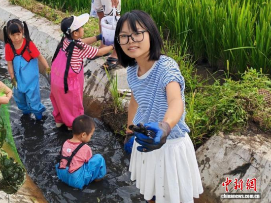 吉林省地處世界黃金水稻帶,出產(chǎn)的稻米天下聞名。來(lái)自臺(tái)南的臺(tái)胞黃俊杰帶著兩個(gè)女兒穿上橡膠靴,拿上網(wǎng)兜,在田野里看稻浪、抓螃蟹。