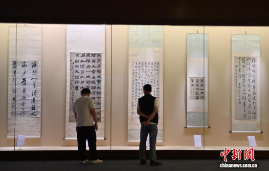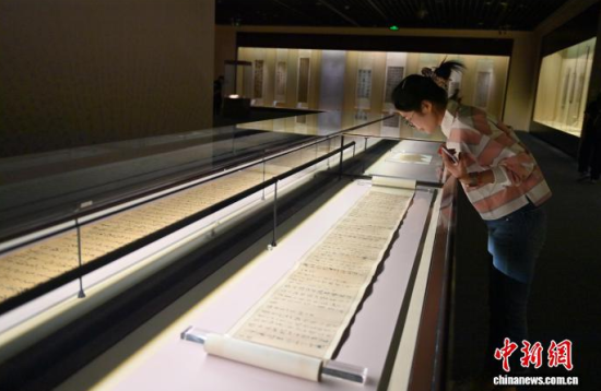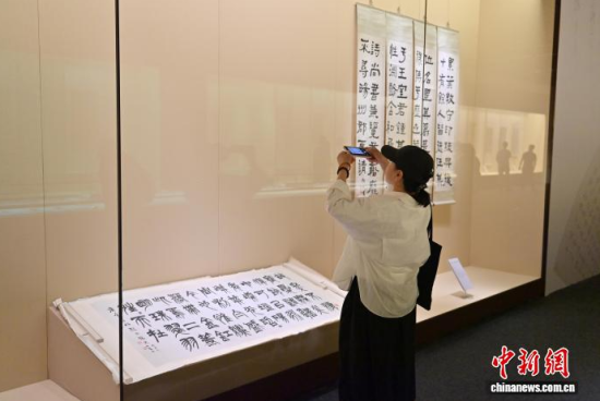 9月10日,參觀者在位于吉林省長春市的吉林省博物院參觀董其昌的《戲鴻堂雜書冊》。近日,“吉林省博物院藏明清書法精品展”在長春開展,此次展覽遴選該院所藏明清書法精品五十余件,均為珍貴文物。展覽不僅系統(tǒng)梳理了明清兩代書法藝術(shù)的發(fā)展脈絡(luò),更是對中華優(yōu)秀傳統(tǒng)文化的傳承與弘揚(yáng)。中新社記者 張瑤 攝