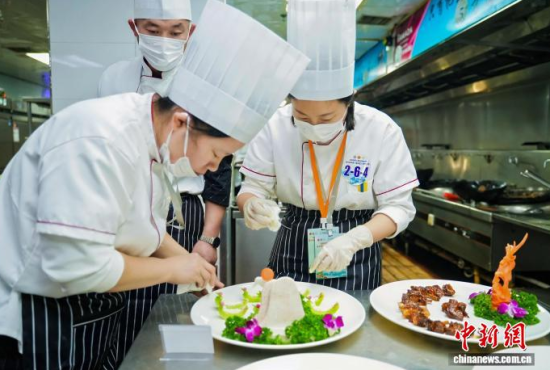 當(dāng)天上午,多支代表隊(duì)在后廚忙碌,操作臺(tái)上,參賽廚師依照藥膳指導(dǎo)師開具的方子,將精選的人參等藥材進(jìn)行預(yù)處理,再與母雞、松花江魚等主料一同入鍋!斑@道湯適合體虛者,我們控制了人參用量,確保其口味和養(yǎng)生功效!币晃贿x手介紹。