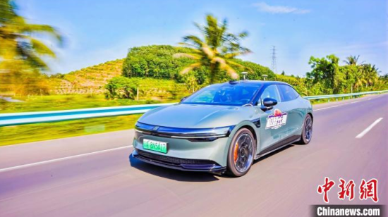 4月12日,在海南東線高速進(jìn)行“極智長(zhǎng)測(cè)”測(cè)試的新能源汽車(chē)。孟子瀟 供圖