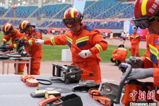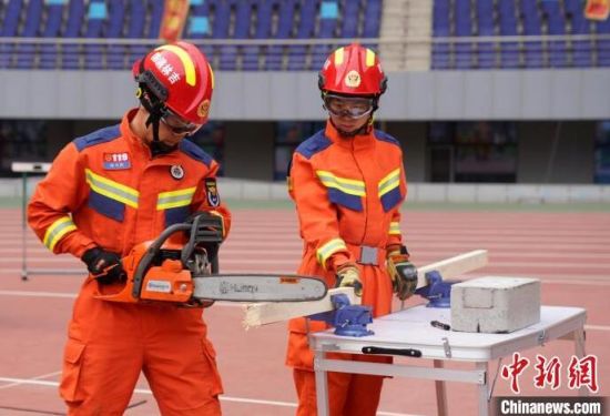 消防指戰(zhàn)員在進行無齒鋸組裝!埇 攝