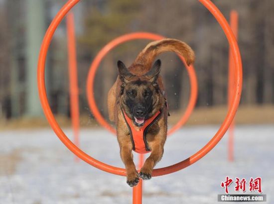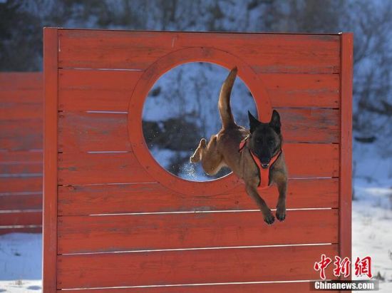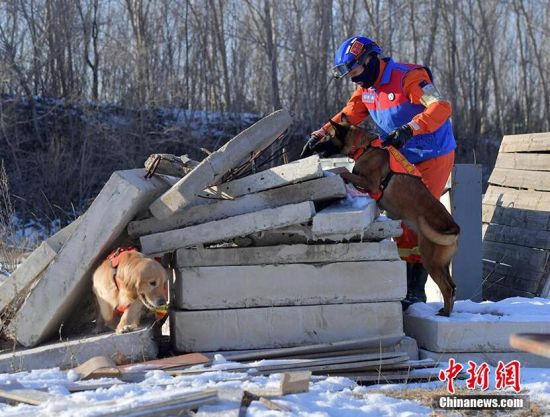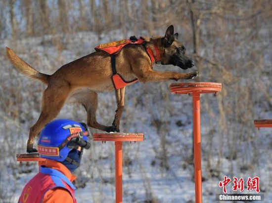 1月18日,在吉林省森林消防總隊特勤大隊訓練場內(nèi),搜救犬正在訓練。為提高搜救犬在嚴寒環(huán)境的適應和實戰(zhàn)能力,吉林省森林消防總隊特勤大隊搜救犬分隊近期通過障礙攀登、繞腿訓練、廢墟搜索訓練等科目,對搜救犬進行冬訓,進一步提升訓導員與搜救犬的默契度和技戰(zhàn)素養(yǎng)。