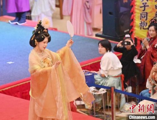 在吉林省延邊州延吉市的中國(guó)朝鮮族民俗園內(nèi),游客身著朝鮮族服飾在散步。張瑤 攝