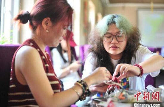 6月8日,吉林省臺(tái)聯(lián)在長春舉辦“金粽飄香 情融兩岸”端午聯(lián)誼會(huì),約20位臺(tái)胞一起包粽子、制作香囊,迎接端午節(jié)。圖為臺(tái)胞在制作香囊。