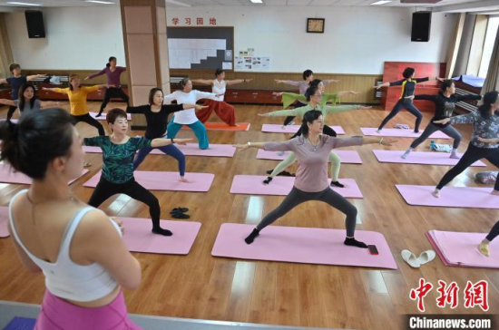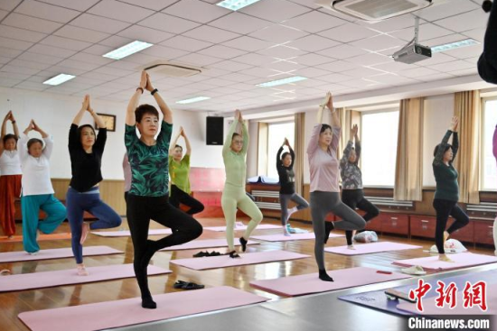 10月24日,在位于吉林長春的吉林省老年大學(xué),老年人在練習(xí)瑜伽。近來,越來越多老年人在運(yùn)動中煥新生活,瑜伽也不再是年輕人的專屬。在老年人的眼中,瑜伽鍛煉了體態(tài)和精神面貌,讓他們看起來“越來越年輕”。中新社記者 張瑤 攝