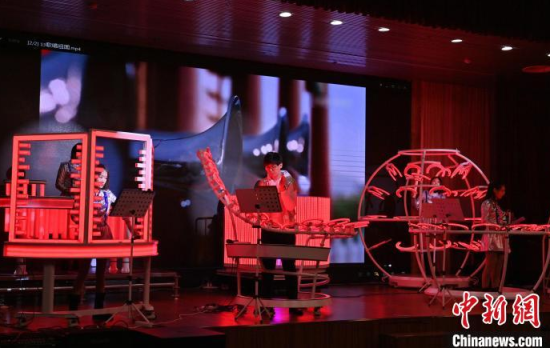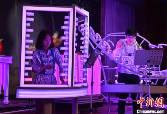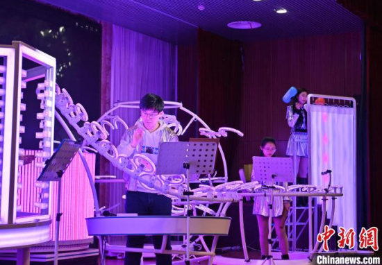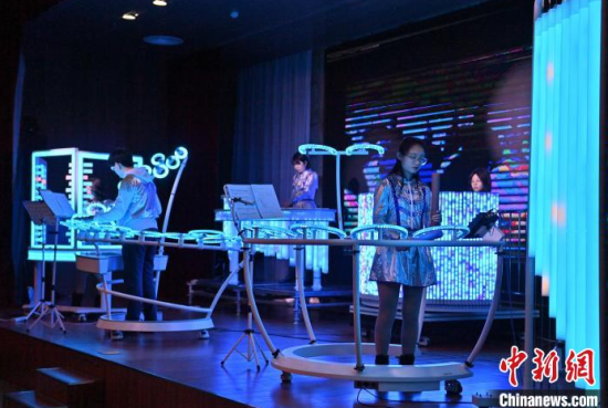 2月22日,在長春中國光學(xué)科學(xué)技術(shù)館,小朋友在體驗光學(xué)樂器。當(dāng)天,由該館工作人員組成的OMI樂隊為觀眾獻(xiàn)上了一場精彩演出,他們利用由傳感器和其他光學(xué)元件制成的光學(xué)樂器,結(jié)合專業(yè)的電子音源,通過用手或鼓棒遮擋光束來產(chǎn)生電信號,觸發(fā)音源,發(fā)出聲音和變換顏色。這種演奏方式仿佛是通過敲擊空氣來演繹美妙的樂曲。中新社記者 張瑤 攝
