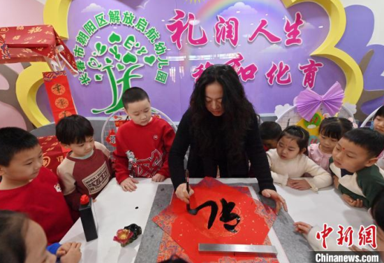 2月24日,吉林省長春市中小學迎來2025年春季學期。幼兒園、中小學紛紛舉行特色活動。圖為在長春解放啟航幼兒園,小朋友們在“童趣卷軸”上用指紋印簽到,寓意“以禮印心”,象征著新學期的美好開端。中新社記者 張瑤 攝