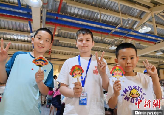 6月14日,吉林長(zhǎng)春,俄羅斯青少年在展示京劇臉譜。當(dāng)天,“感知吉林·青春同行”2025中俄青少年文化交流系列活動(dòng)在長(zhǎng)春?jiǎn)?dòng)。近 200 名中俄青少年參與京劇臉譜繪畫、制作魚皮畫等活動(dòng),感受中國(guó)文化科技魅力。中新社記者 張瑤 攝