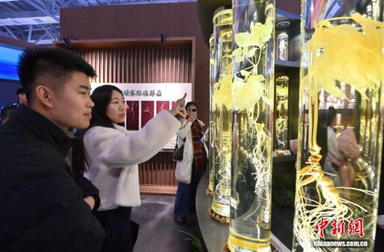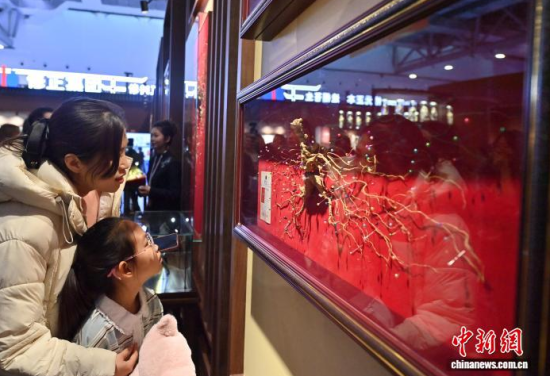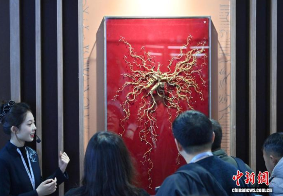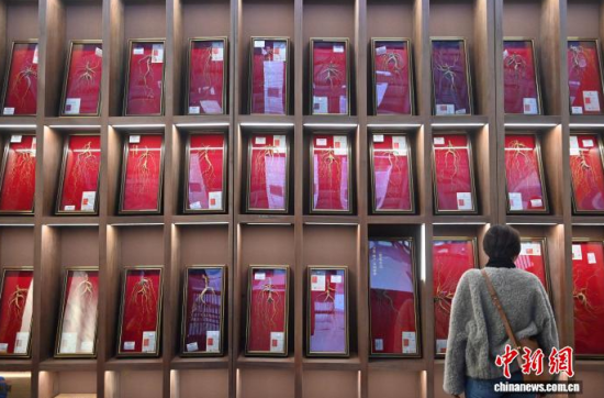 12月7日,吉林長(zhǎng)春,參觀者在參觀人參。當(dāng)日,2025長(zhǎng)春國際醫(yī)藥健康產(chǎn)業(yè)博覽會(huì)開幕,具有當(dāng)?shù)靥厣那暌吧絽、人參?biāo)本在人參展區(qū)展出,吸引了參觀者的目光。中新社記者 張瑤 攝