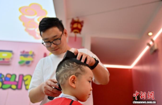 2月13日,吉林長春,小朋友在剪發(fā)。馬年春節(jié)臨近,不少家長帶著孩子剪發(fā),理發(fā)師也為孩子們特別設(shè)計了各式有趣的造型。中新社記者 張瑤 攝