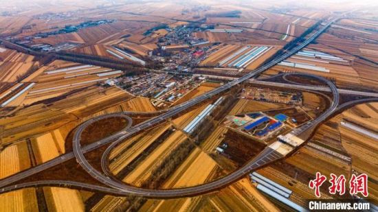 鳥瞰長(zhǎng)春都市圈環(huán)線高速公路東環(huán)二期項(xiàng)目。(資料圖) 吉林省交通運(yùn)輸廳供圖