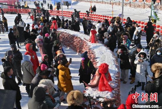 2023年中國(guó)查干湖第二十二屆冰雪漁獵文化旅游節(jié)開(kāi)幕現(xiàn)場(chǎng)。(資料圖) 中新社記者 張瑤 攝