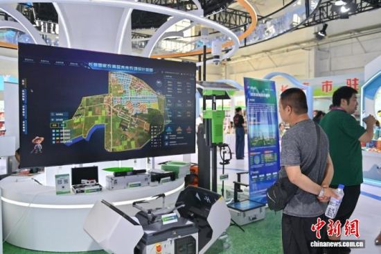 參觀者在參觀長春國家農(nóng)高區(qū)未來農(nóng)場設(shè)計(jì)藍(lán)圖!埇 攝