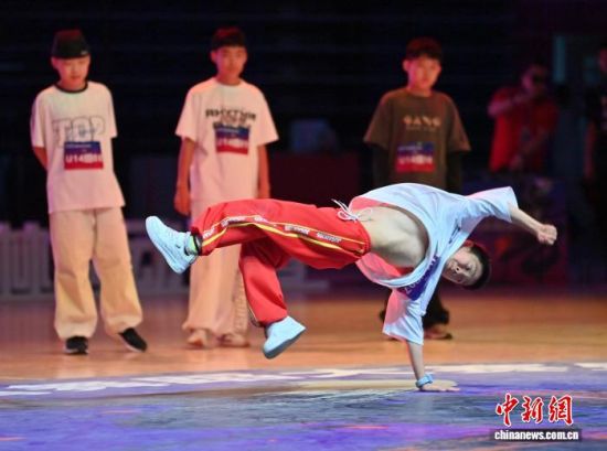 9月6日,選手在一對一斗舞比賽中表演!埇 攝