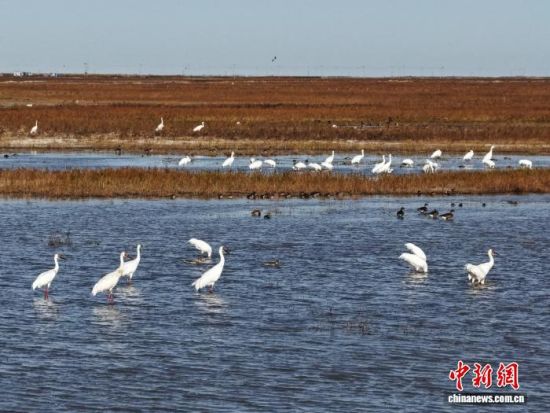 5日清晨,在該縣的二龍濤河流域,記者與保護(hù)人員觀測(cè)到400多只白鶴、3000余只灰鶴及上萬只雁鴨。東方白鸛、白枕鶴、小天鵝等珍稀鳥類也相繼現(xiàn)身,在水面與稻田間穿梭。