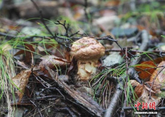 9月20日,吉林延邊,和龍林業(yè)局青山林場(chǎng)的松茸破土而出!±钴娍 攝