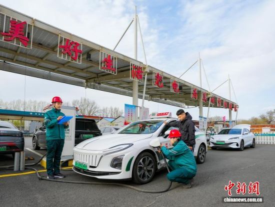 電力員工服務(wù)新能源汽車車主充電。(國(guó)網(wǎng)吉林省電力有限公司供圖)